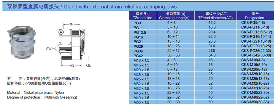 產(chǎn)品名稱:雙鎖緊型金屬電纜接頭